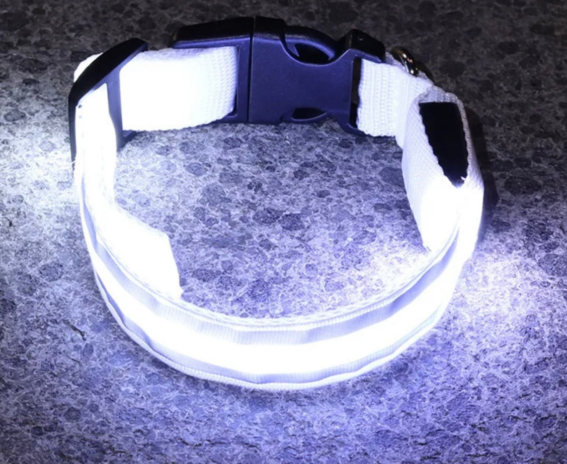 הקולר LED Poochly Glow™ בלבן מבטיח נראות עד 100 מטרים. עמיד במים, נטען מחדש, קל ונוח, הוא משלב בטיחות וסטייל לטיולים הליליים שלכם.